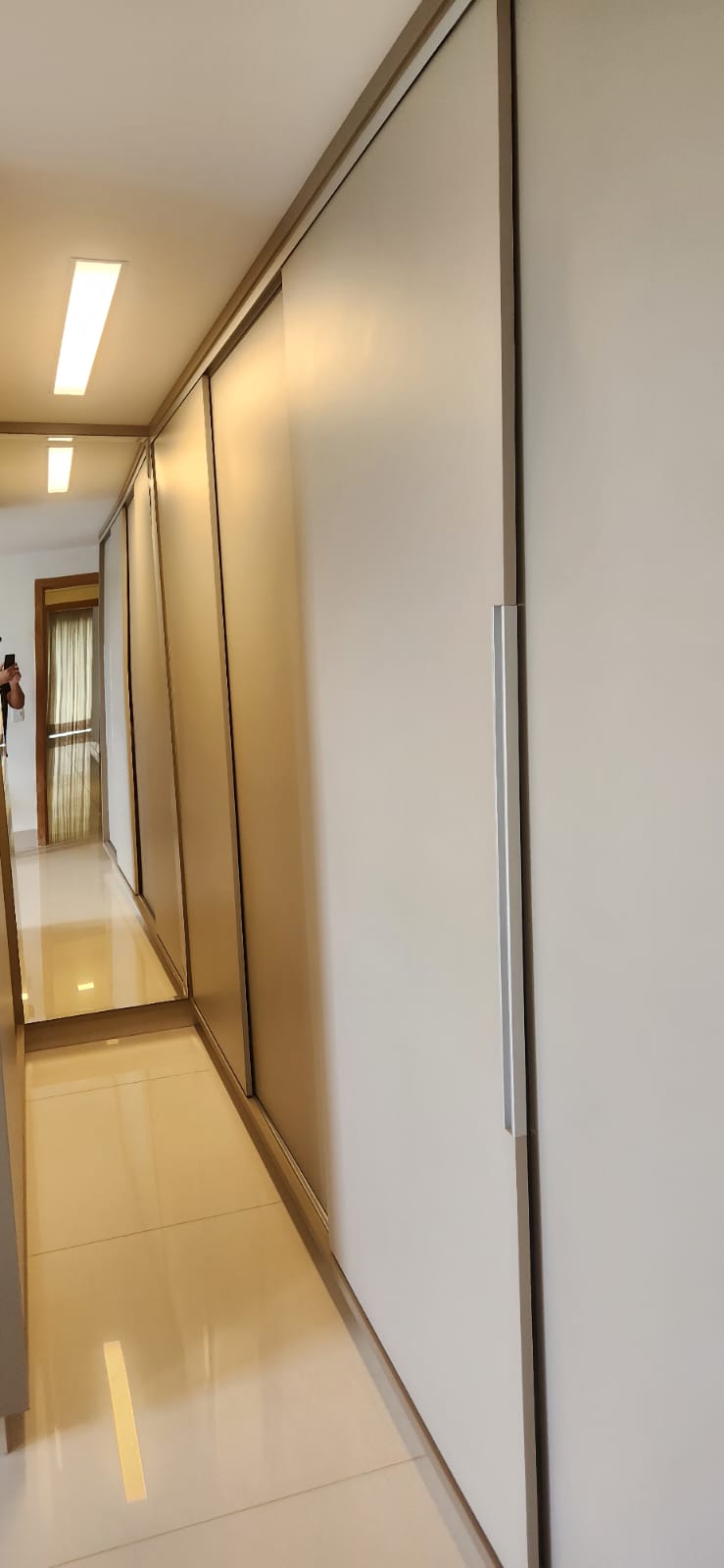 04 suítes sendo uma suíte máster, copa / cozinha, área de serviço, despensa, banheiro de serviço e laje técnica, montado em armários planejados, cortinas e ar condicionado, totalizando uma área de 214,88 m². Possui Ainda 3 vagas de garagem e 1 escaninho.