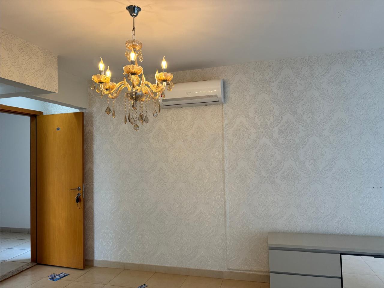 03 quartos sendo 01 suíte, sala com ar condicionado, cozinha com planejado, e 2 vagas de garagem.