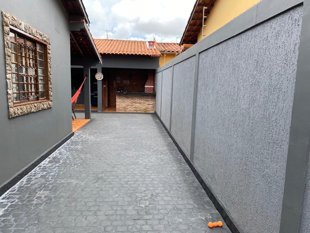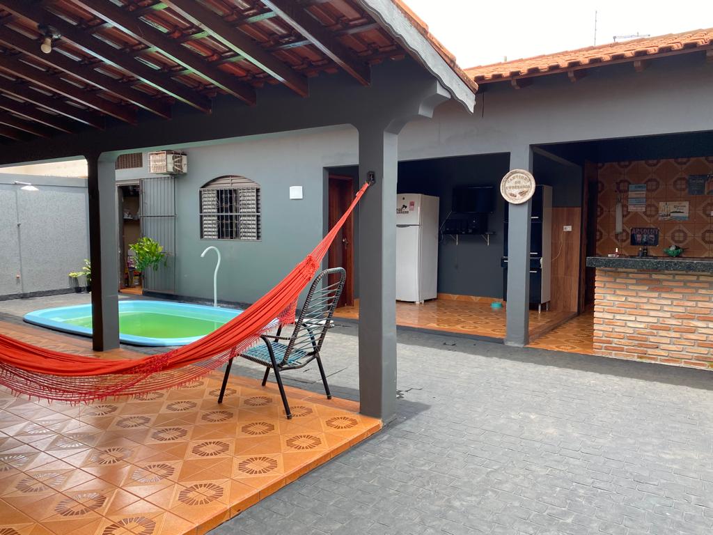 03 quartos sendo 01 suíte, sala, copa, cozinha com armários, banheiro social, 01 suíte no fundo, dispensa, área de serviços, área de lazer com churrasqueira e piscina, garagem p/ 03 carros.