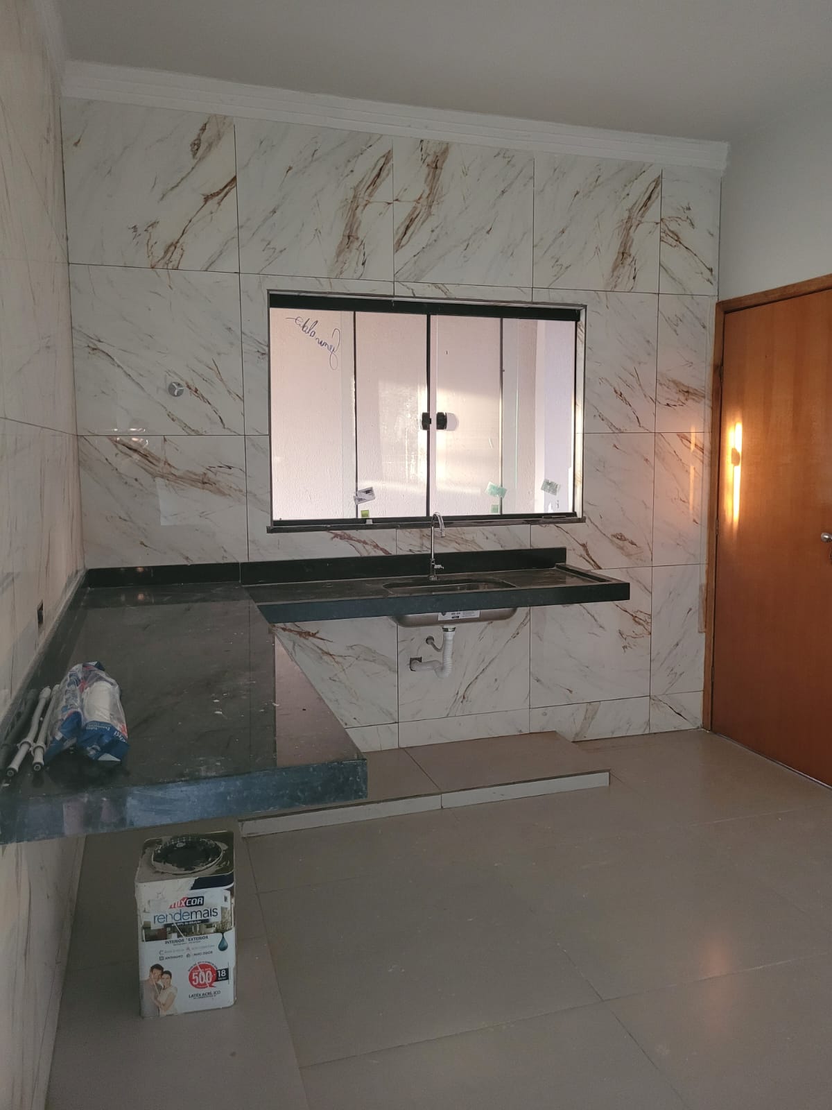 3 dormitórios sendo 1 suíte, sala, cozinha, banheiro social, área de serviço e garagem.