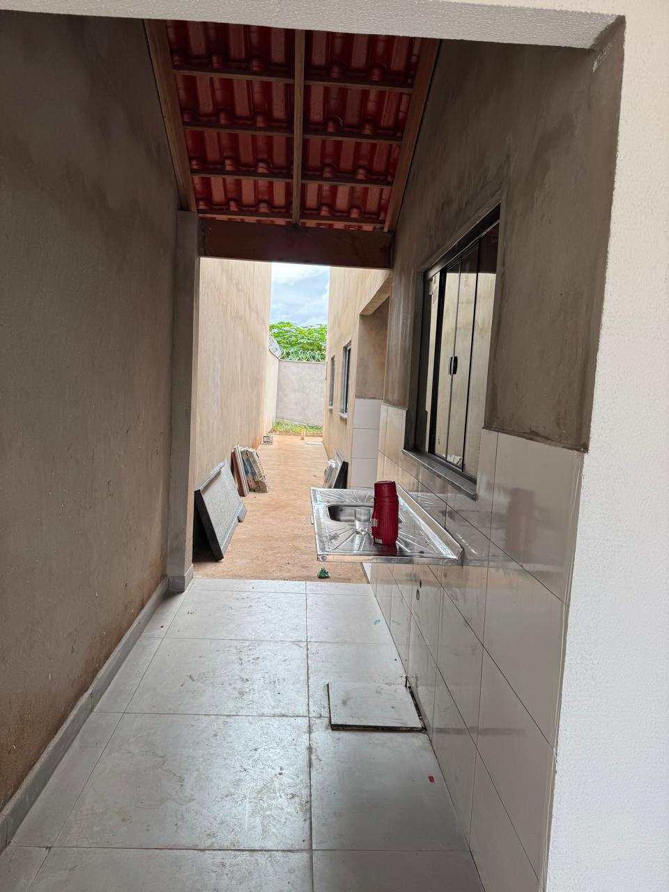 2 dormitórios sendo 1 suíte, sala, cozinha, banheiro social, área de serviço e garagem.