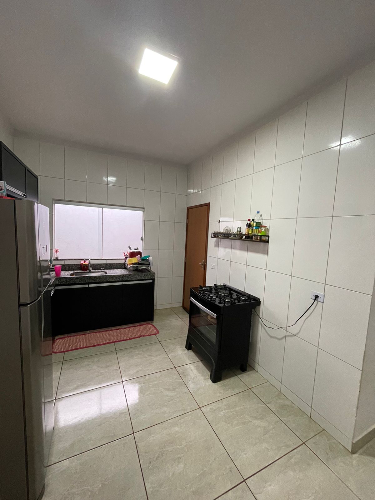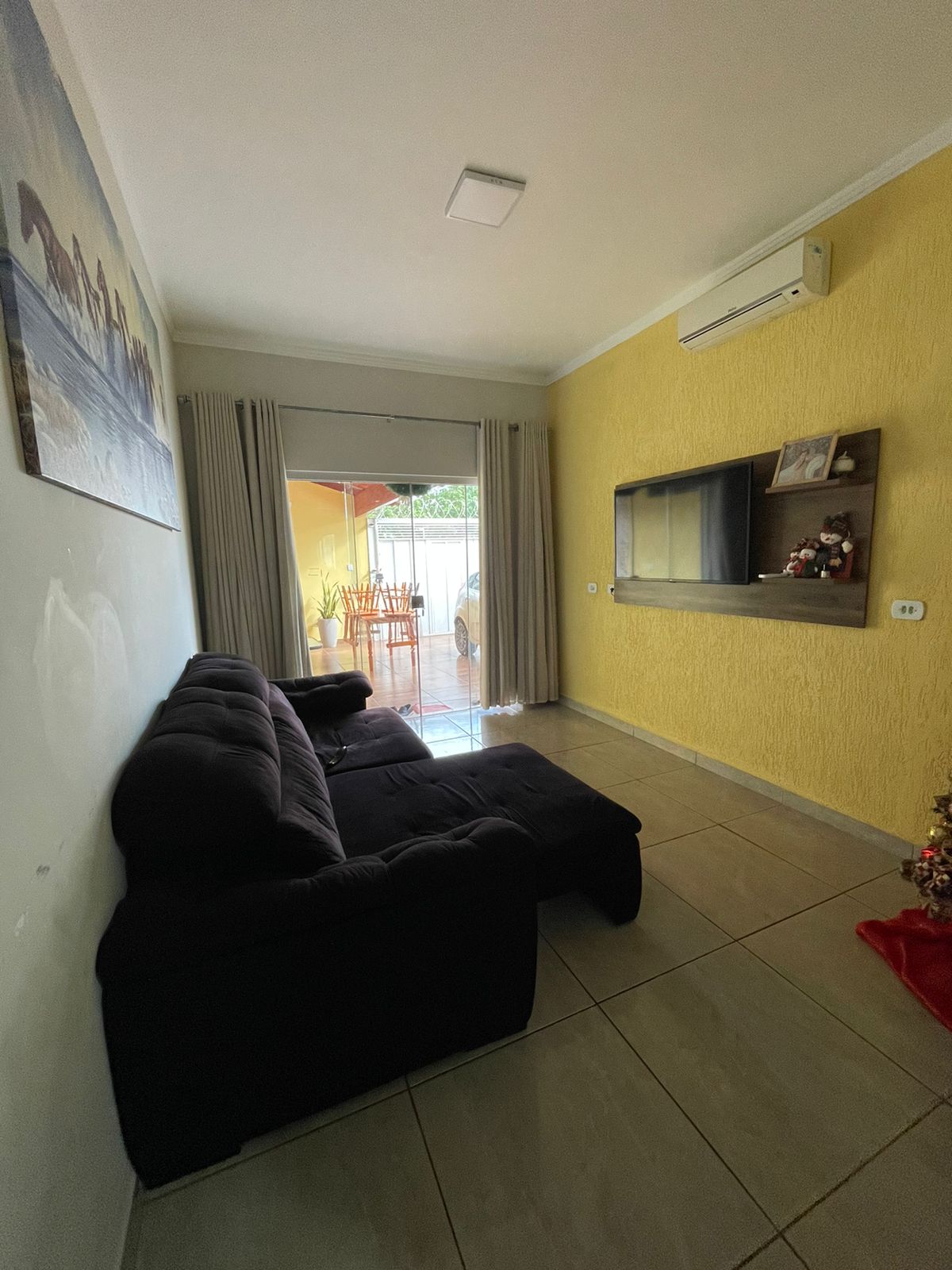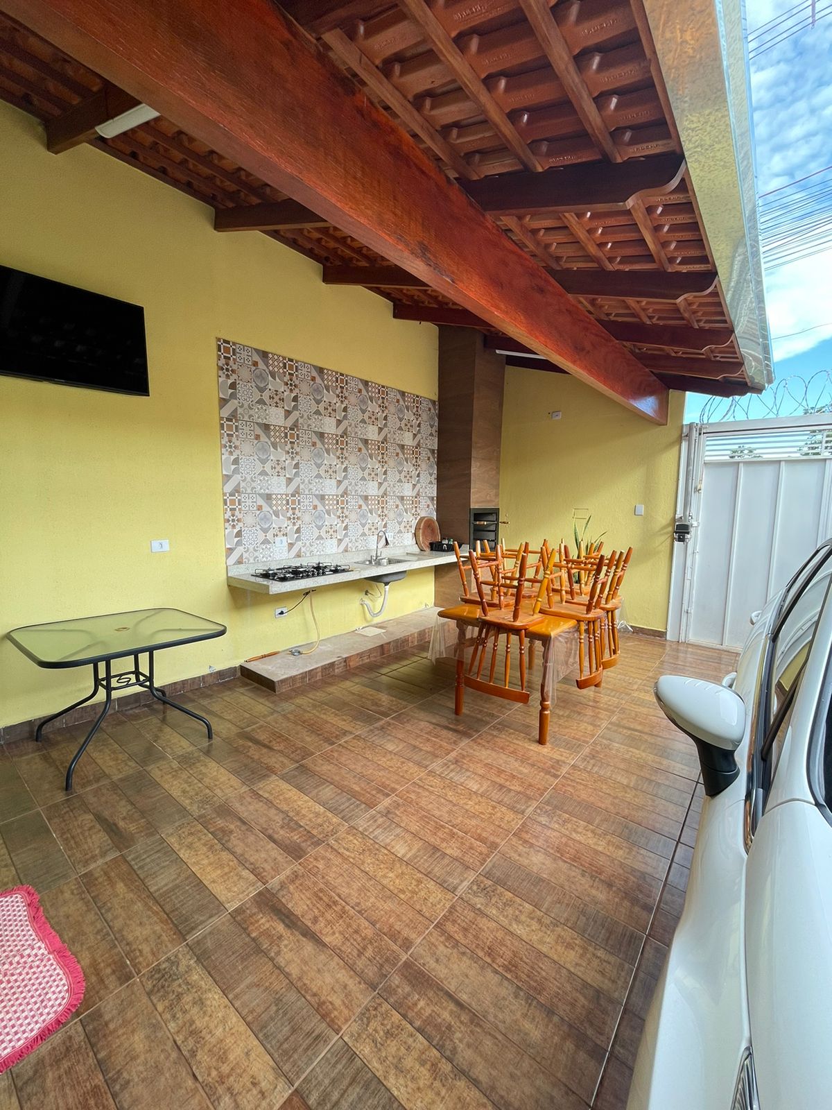 02 quartos sendo 01 suíte, sala, cozinha com planejados, banheiro social, lavanderia, garagem, área de lazer, garagem com portão eletrônico, energia solar.