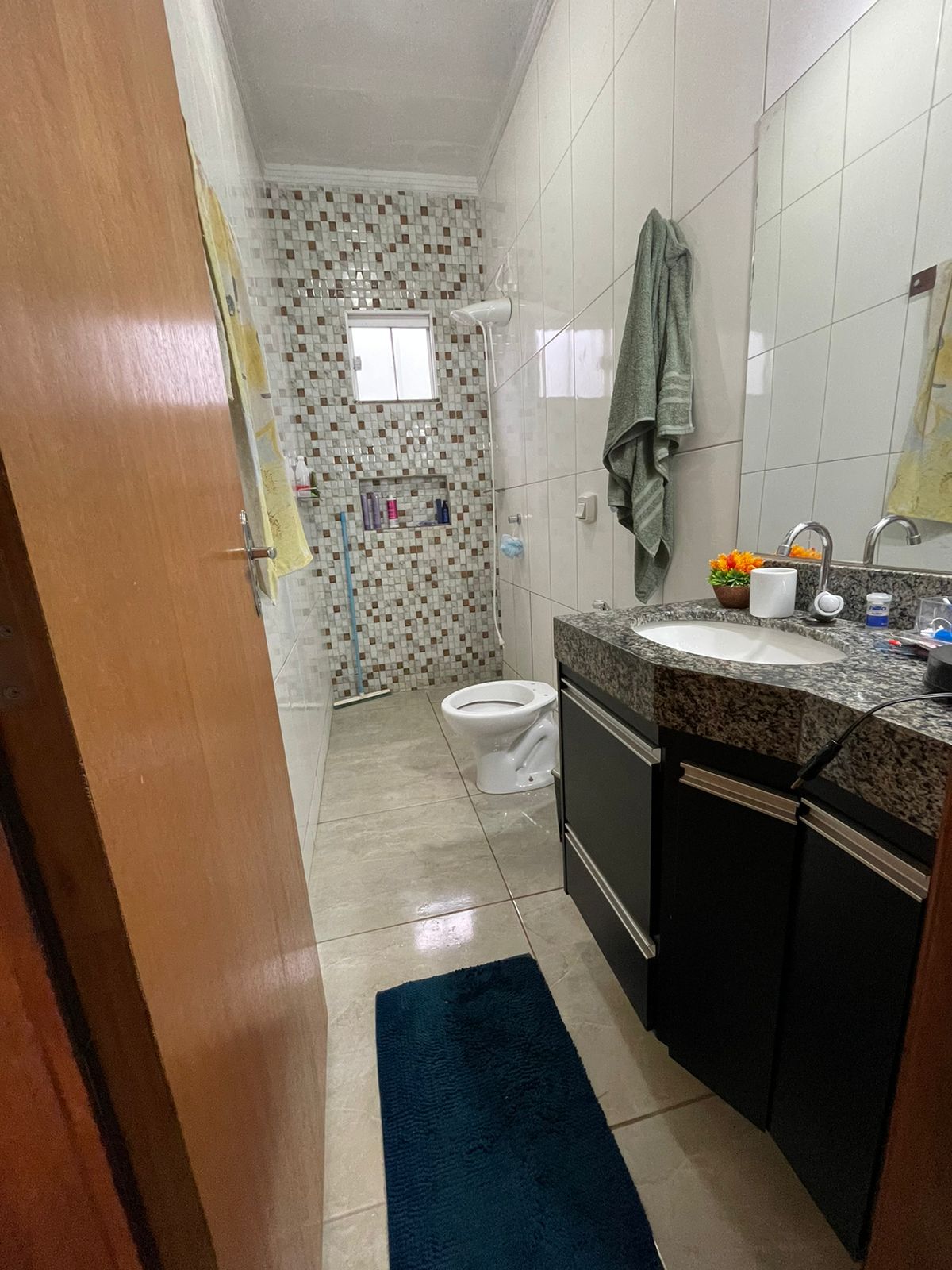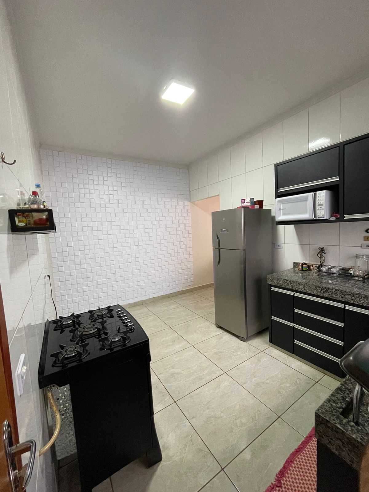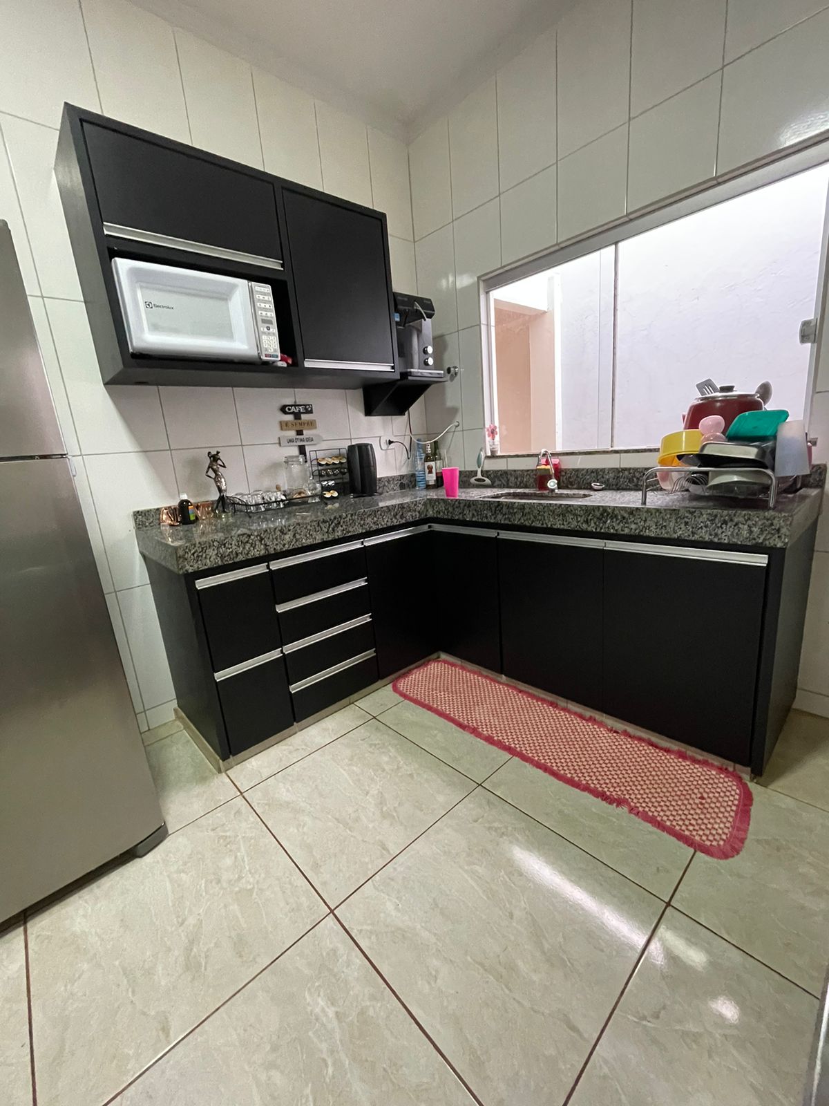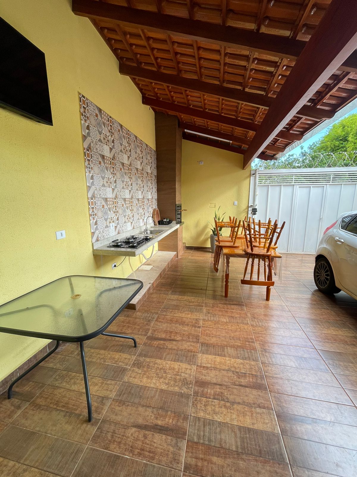 02 quartos sendo 01 suíte, sala, cozinha com planejados, banheiro social, lavanderia, garagem, área de lazer, garagem com portão eletrônico, energia solar.