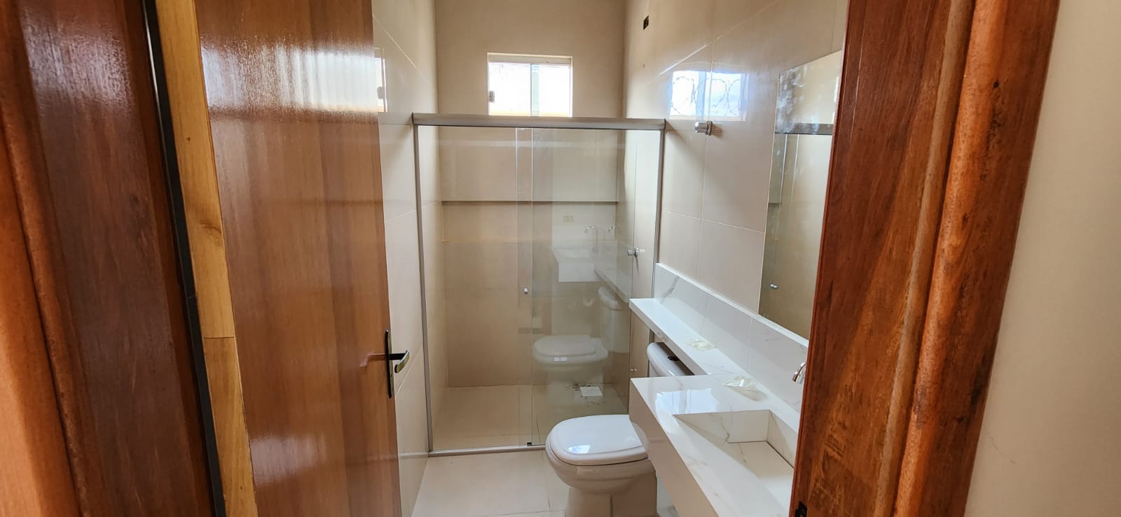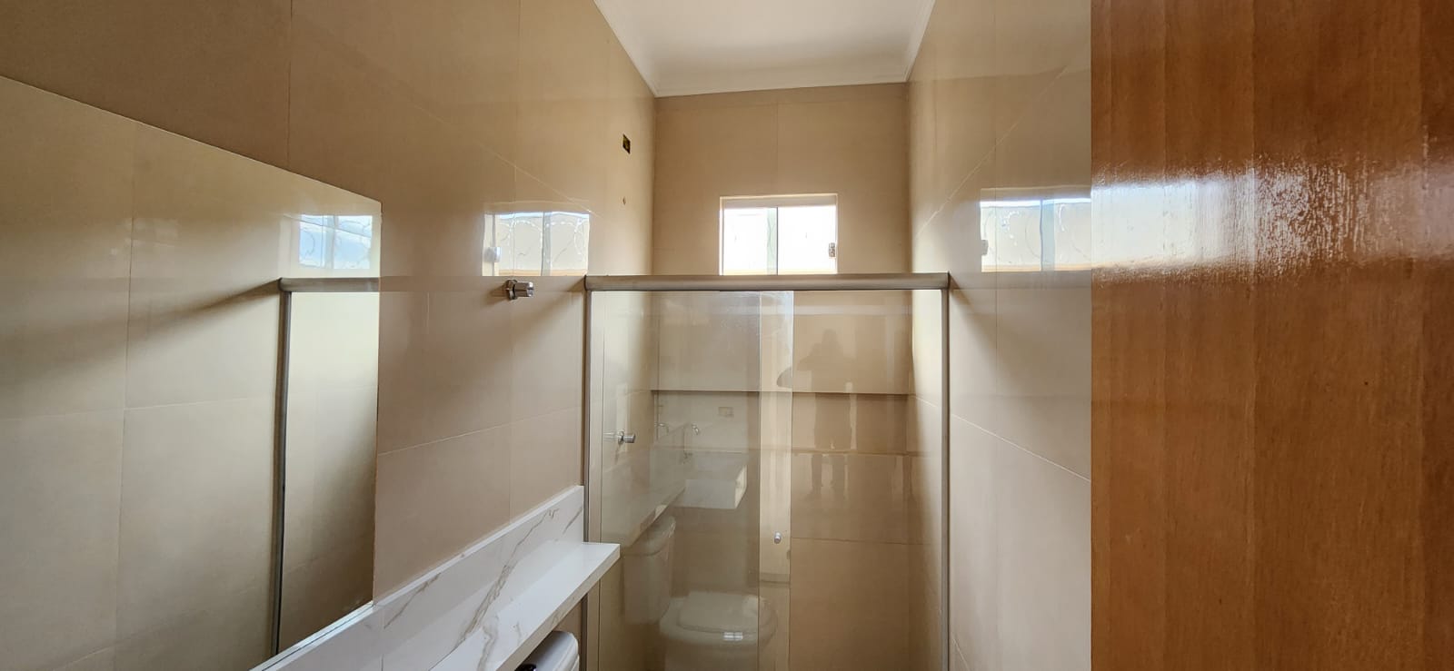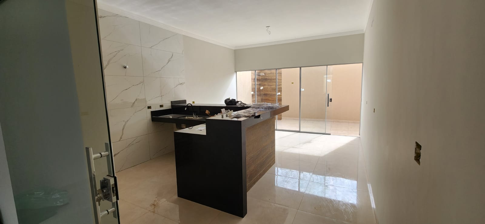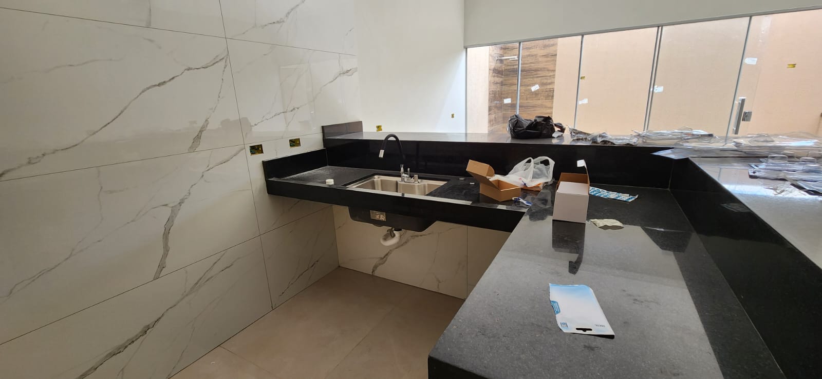 Calçada e frente da casa em pedra portuguesa preta com detalhe rosa, totalmente resinadas; Jardim com gramado e plantas ornamentais na frente da casa; Tubulação hidráulica 100% Tigre; Pré-instalação de ar condicionado e drenos em todos os cômodos; Tubulação de gás embutida para cooktop; Lixeira premium reforçada; Portão basculante de 3,50m, em alto padrão; Portão social com fechadura elétrica; Concertinas instaladas; Ducha na área externa; Piso em porcelanato, com rodapés embutidos; Lavanderia separada da casa;
