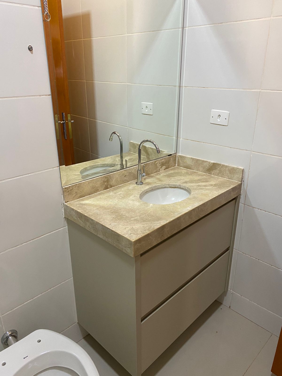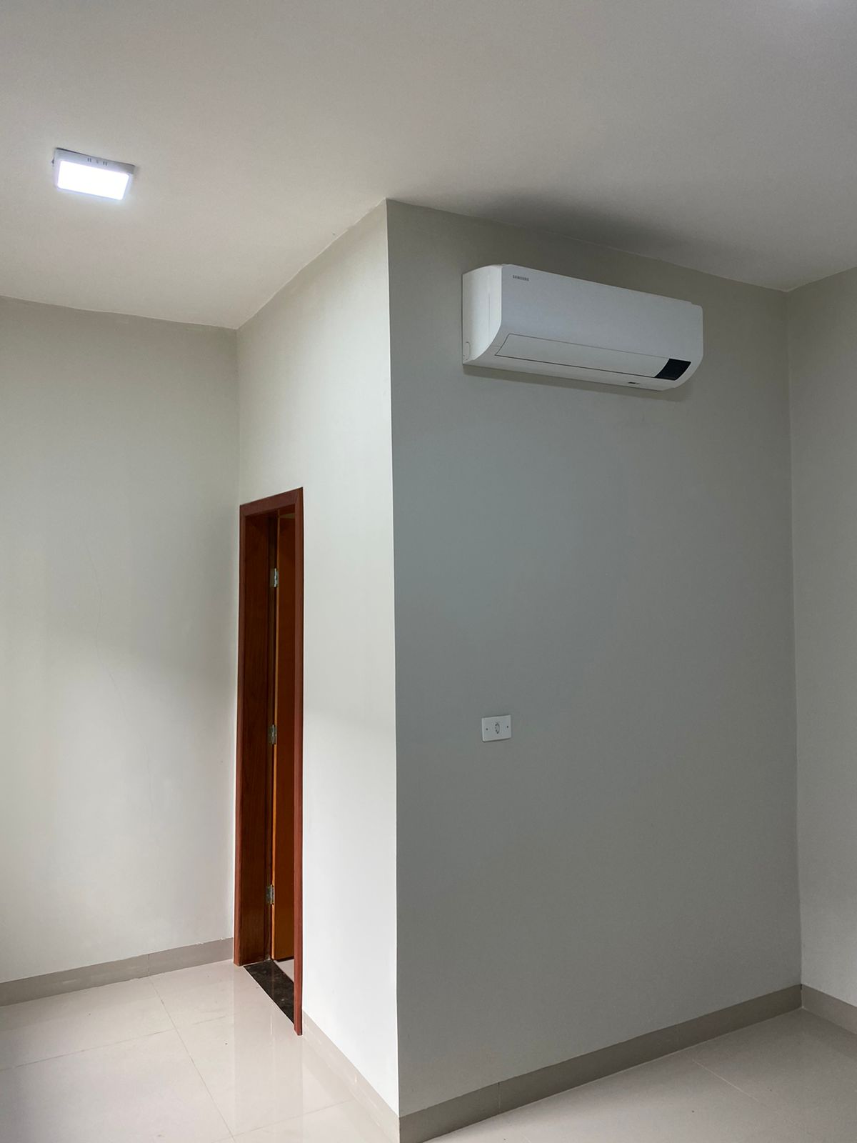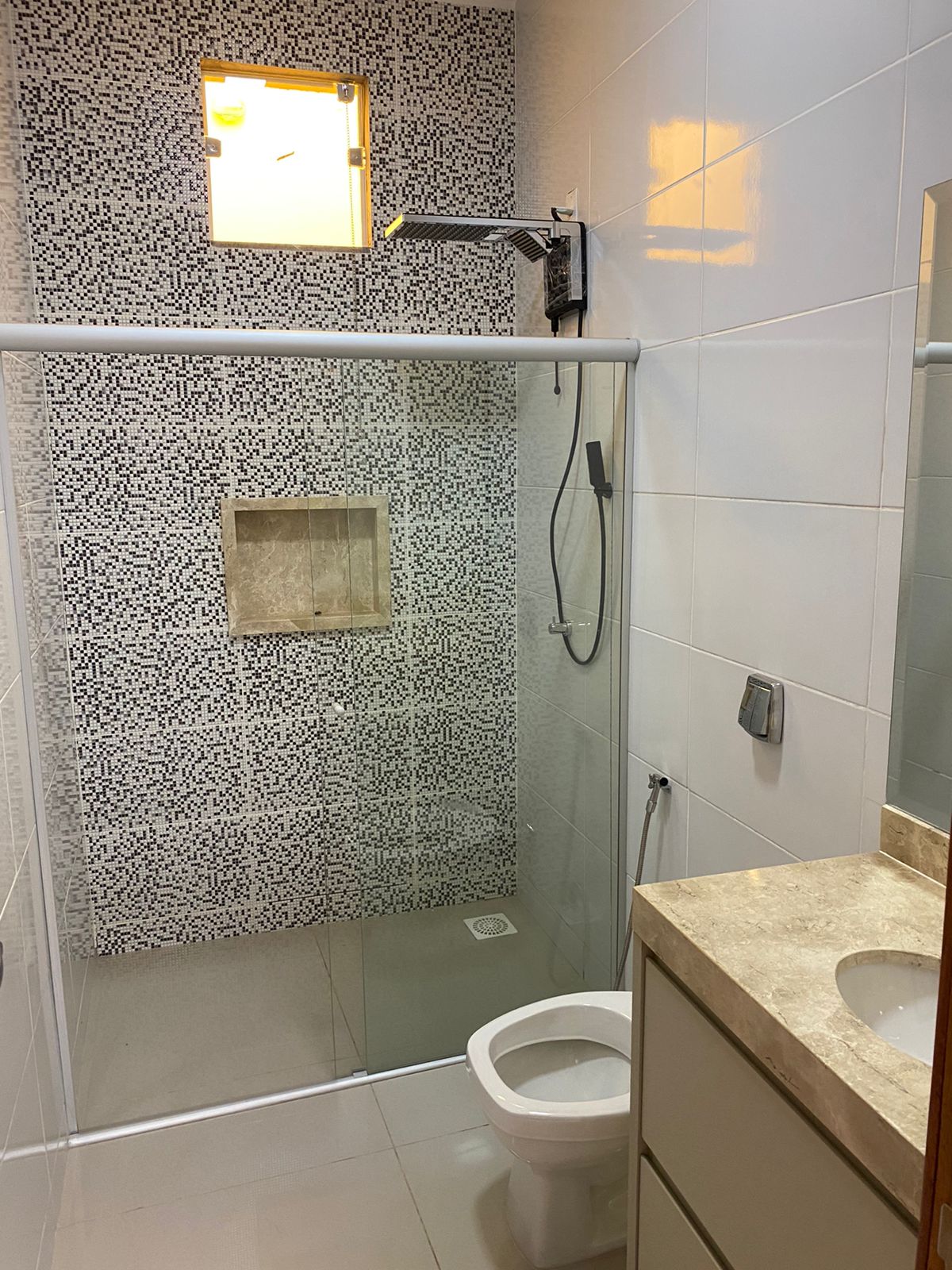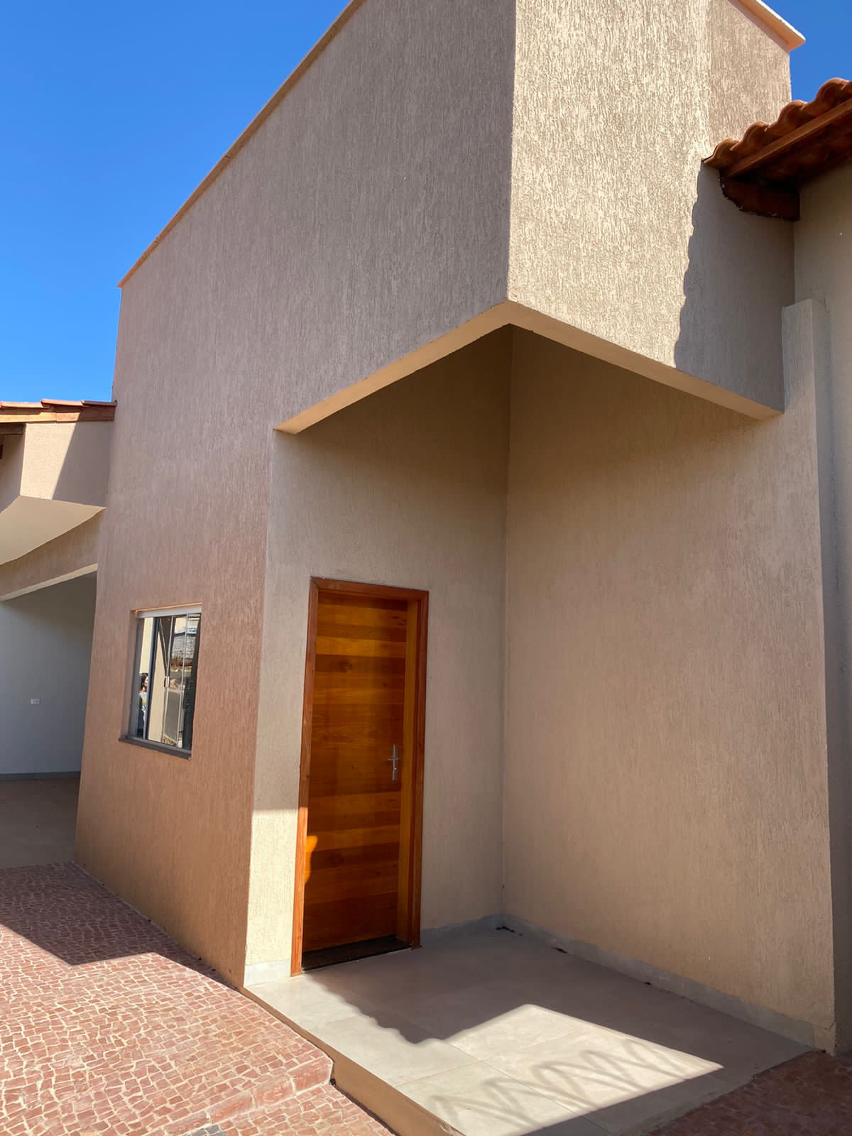 03 quartos sendo 01 suíte, sala, cozinha com armários, banheiro social, área de serviços, garagem ampla.