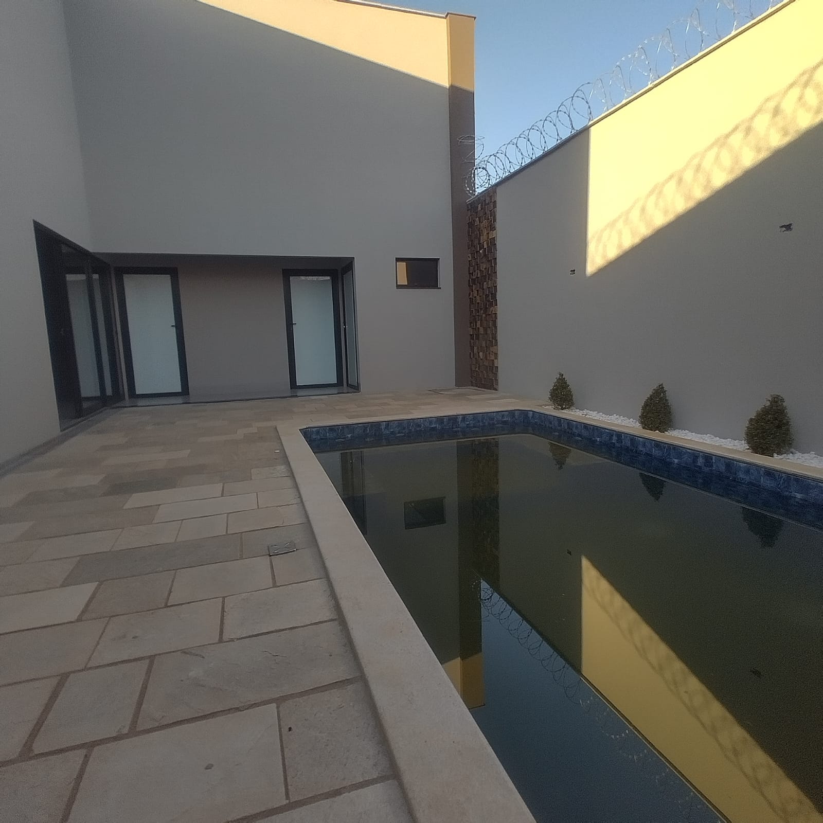 Ampla área construída de 210 metros, com: 3 quartos sendo uma suíte, banheiro social, sala espaçosa, cozinha gourmet, banheiro externo, despensa, área de serviço fechada e piscina.