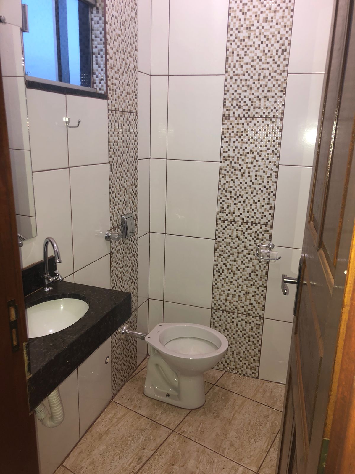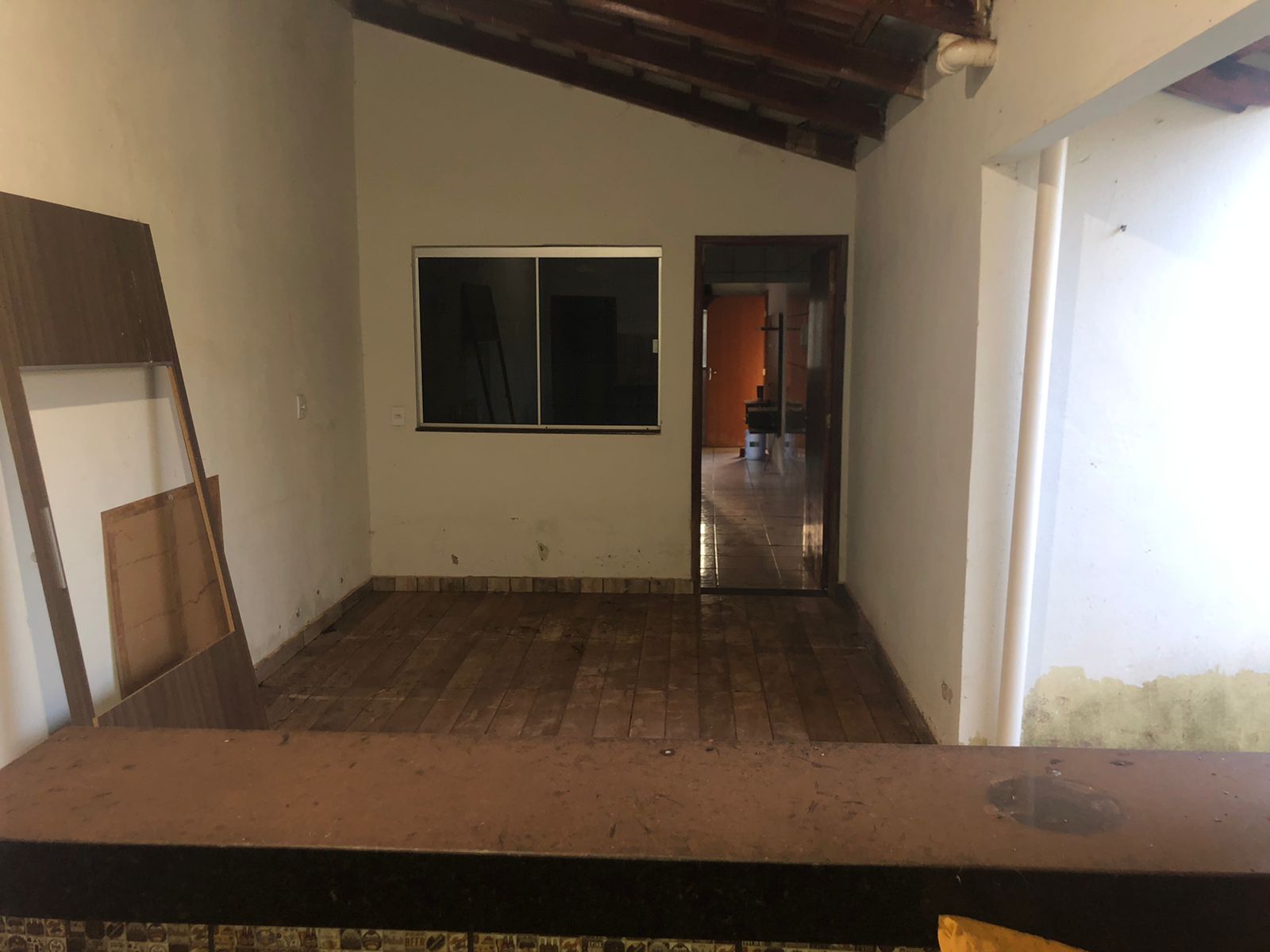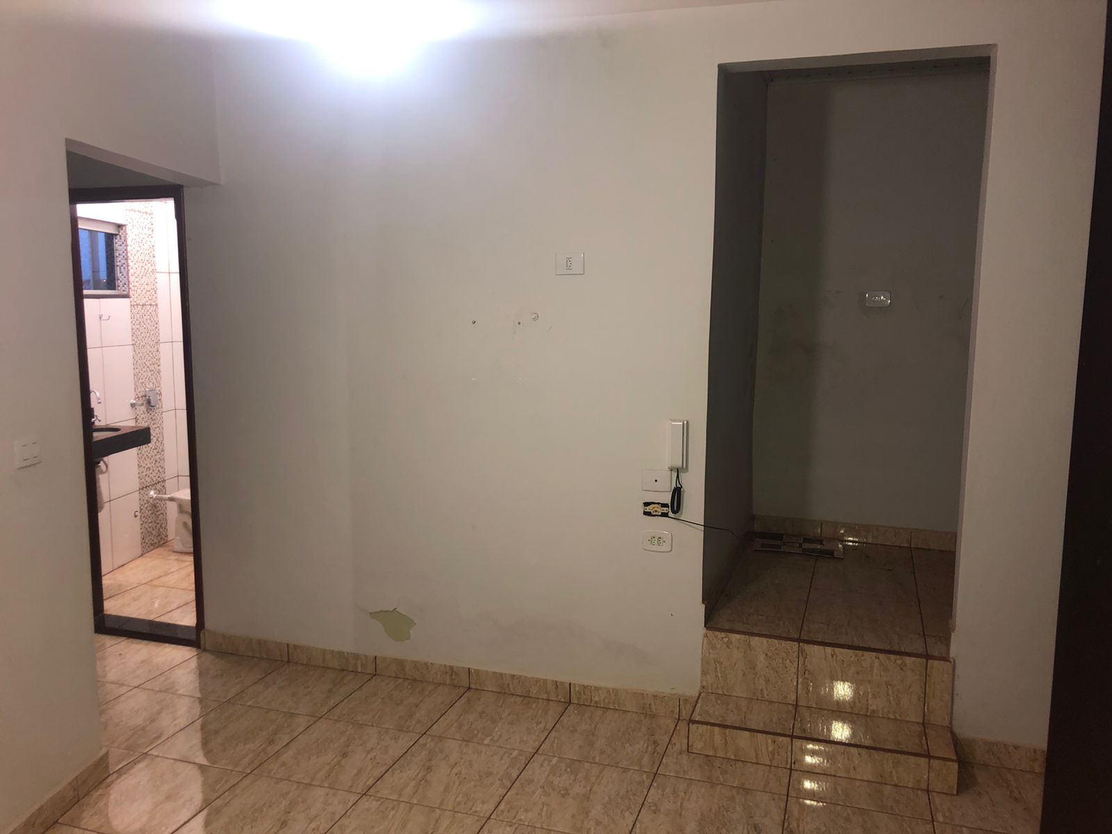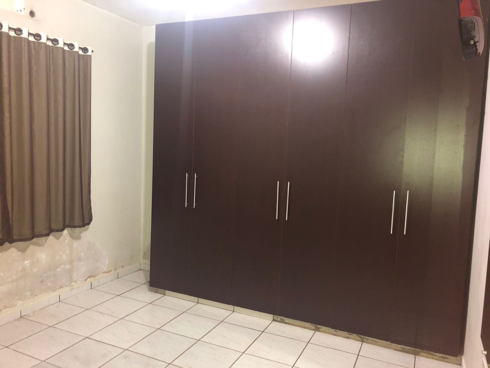 02 quartos, sendo um suíte com armário embutido, banheiro social, sala, cozinha com armário por baixo da pia embutido, garagem, área de lavanderia com dispensa, na parte de cima sala com recepção, arquivo e banheiro.