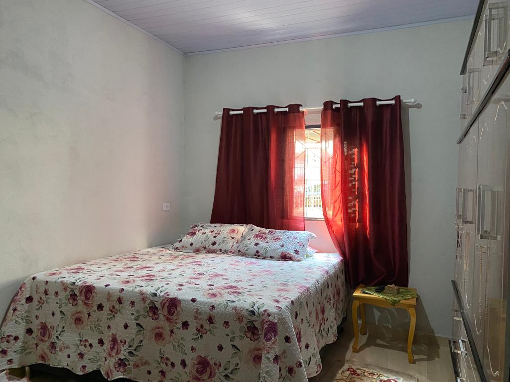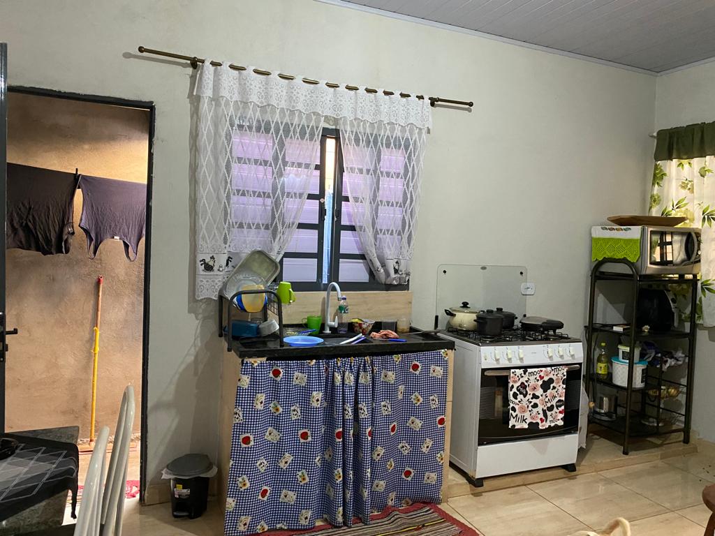 02 quartos sendo 01 suíte, sala e cozinha conjugada, banheiro social, área de serviços e garagem.