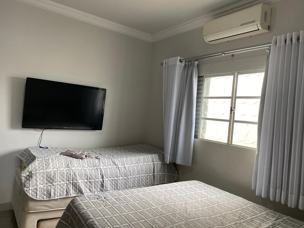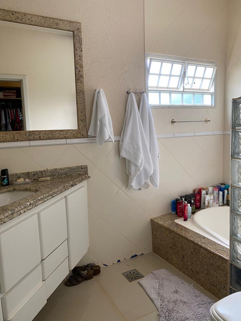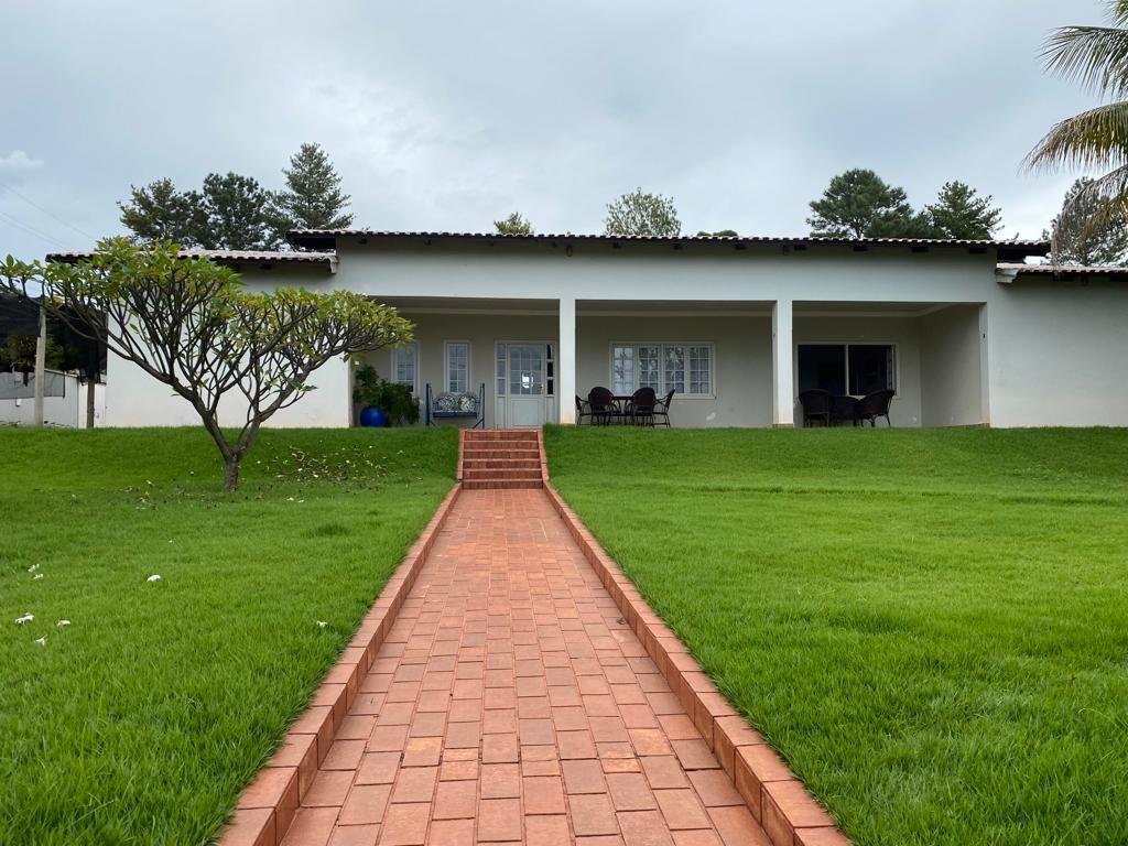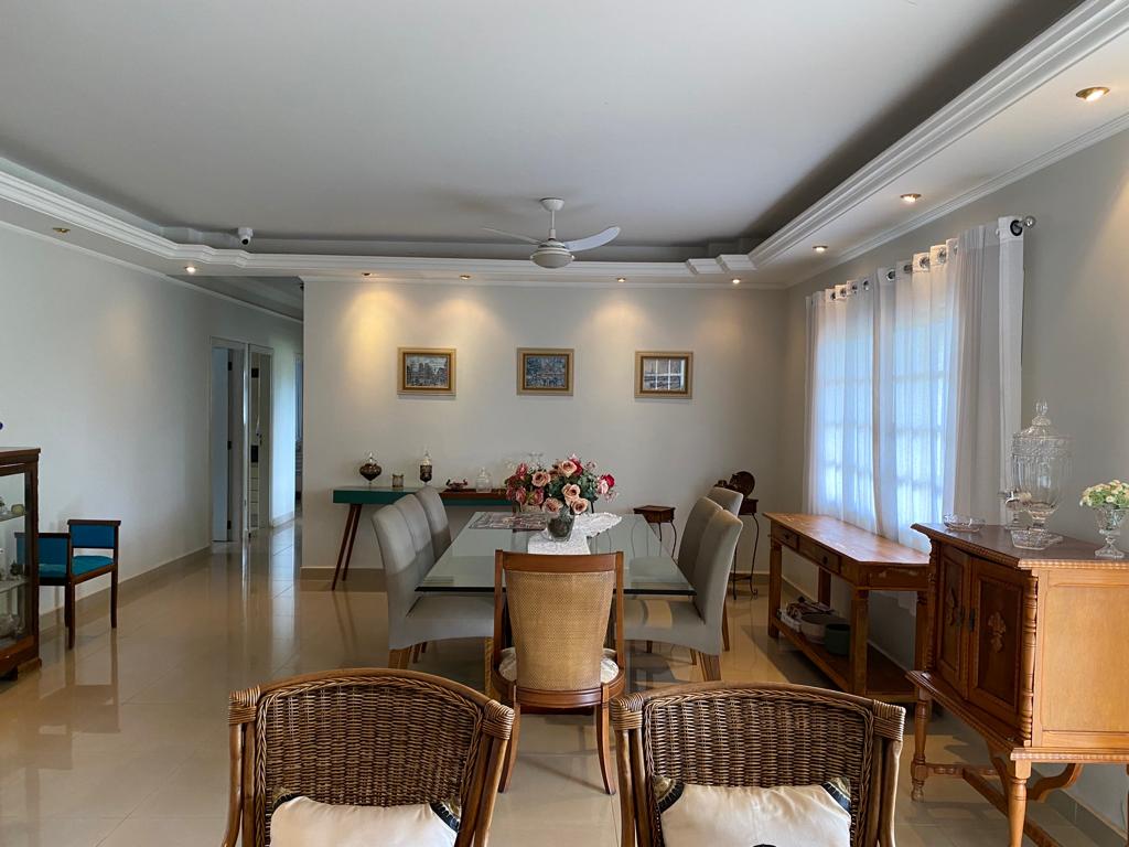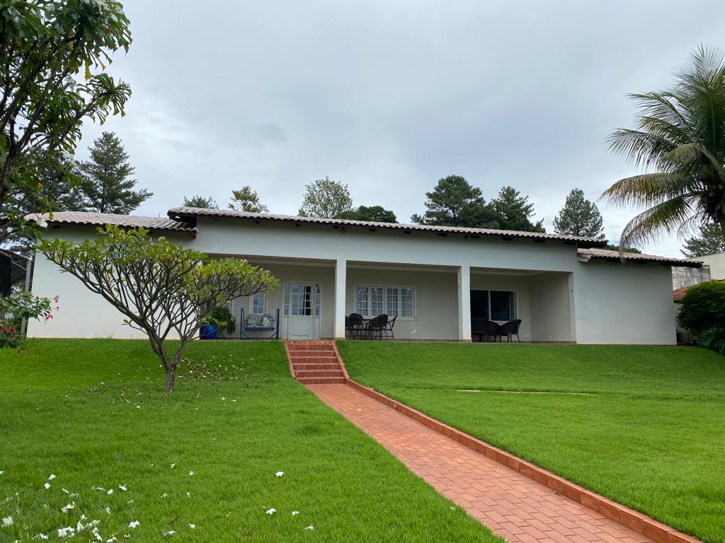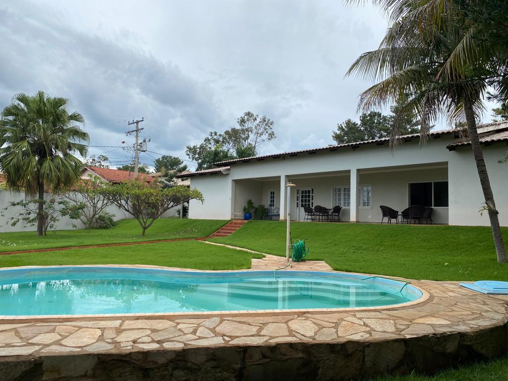 04 quartos sendo 02 suítes, ampla sala com dois ambientes, lavabo, cozinha com armários, área de serviços, banheiro, área de lazer com piscina, toda gramada com irrigação, cerca elétrica e câmeras.
