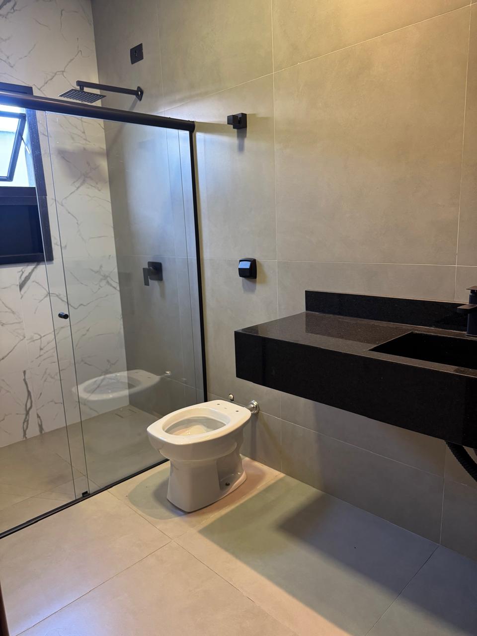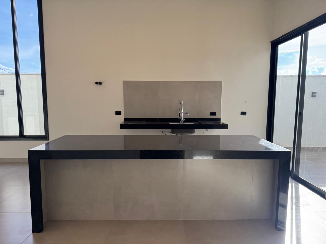 Casa á venda de Alto padrão no condomínio Paris Park, sendo: sala, cozinha em ilha, piso porcelanato acetinado, banheiro social, 3 dormitórios sendo todos suíte, área de lazer gourmet, piscina, área de serviço e Garagem.