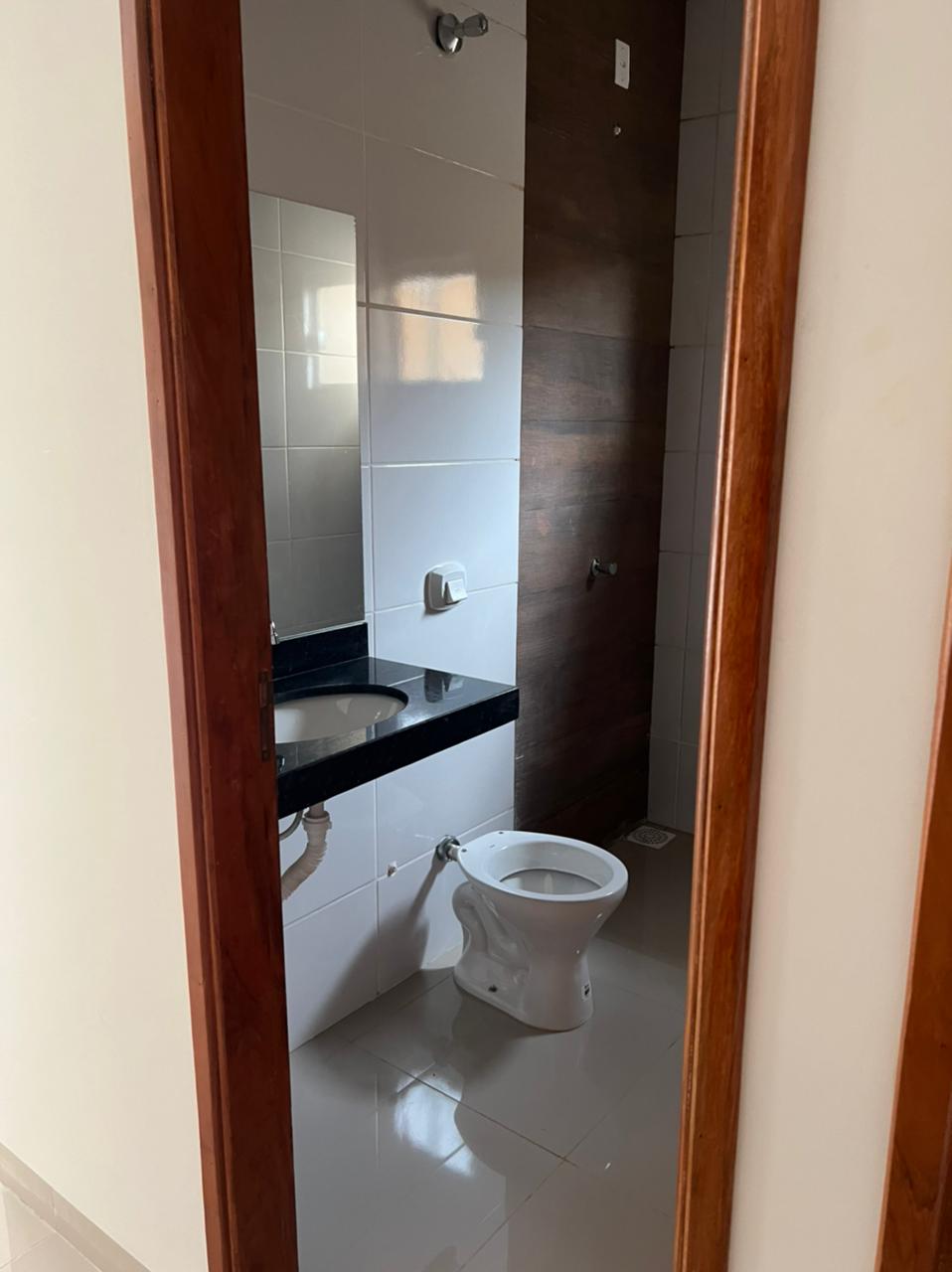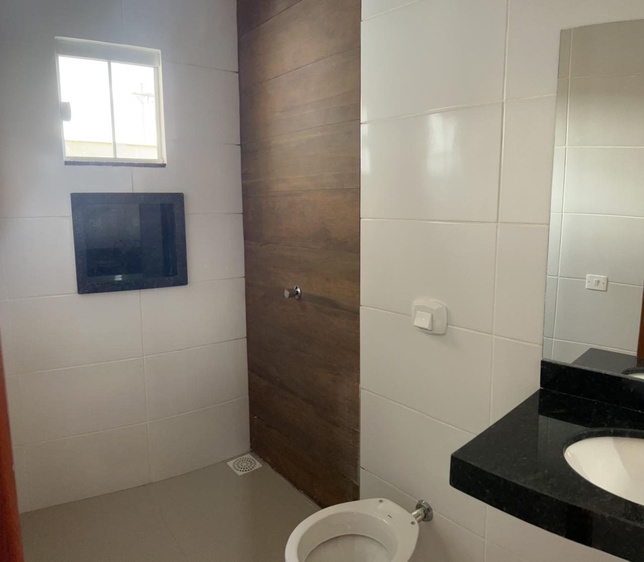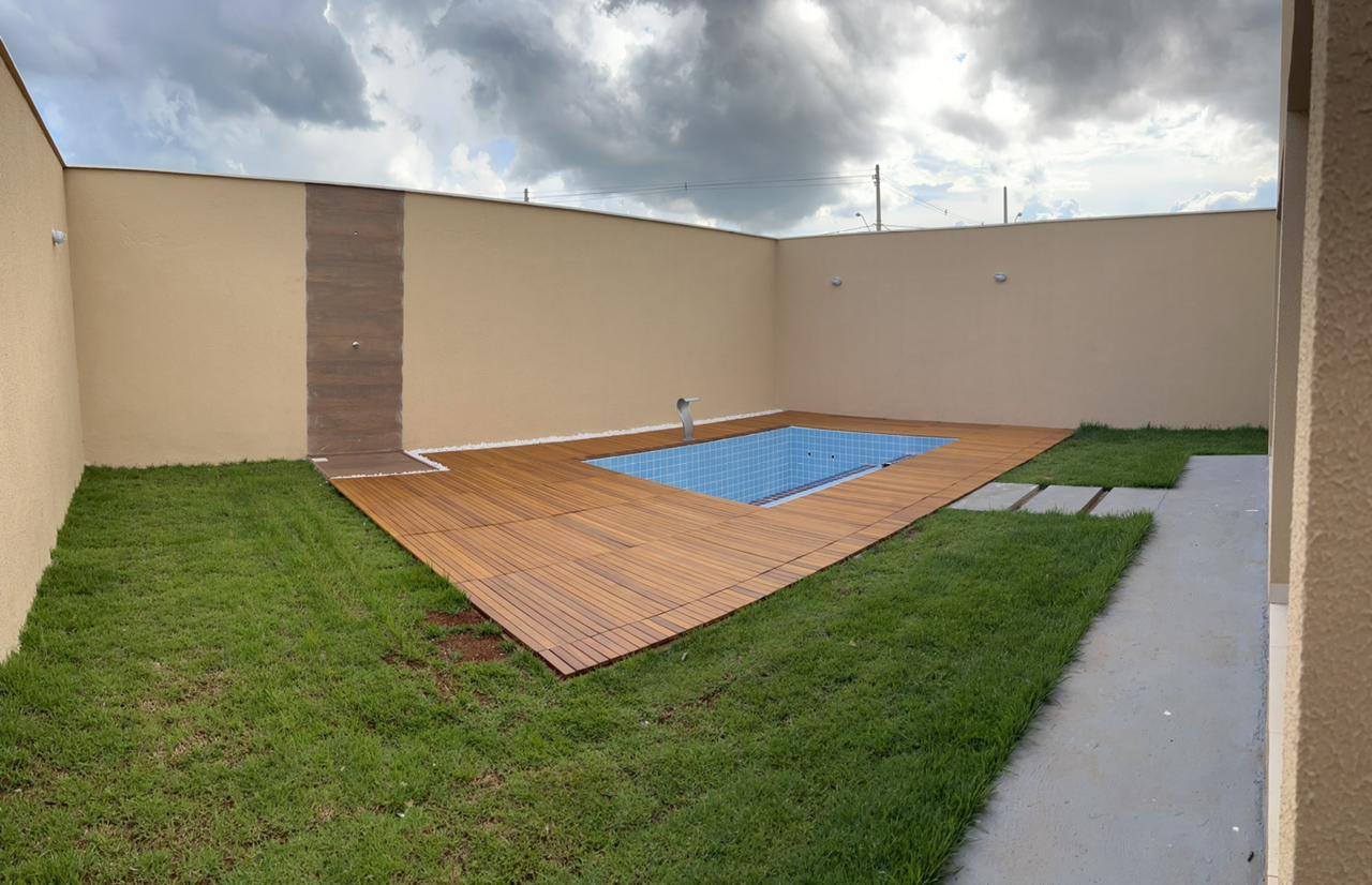 03 quartos sendo 01 suíte, sala e cozinha conjugada, banheiro social, área de serviços, casa toda na laje, Pé direito mais alto, deck em madeira naútica, desmontável, Casa toda em porcelanato polido nas áreas internas e Acetinados na área externa, com roda pé embutido, Janelas de alumínio em ótimo acabamento, Porta da sala em Alumínio, Quartos com pontos de ar condicionado, Piscina com casa de máquinas para montagem de bombas.