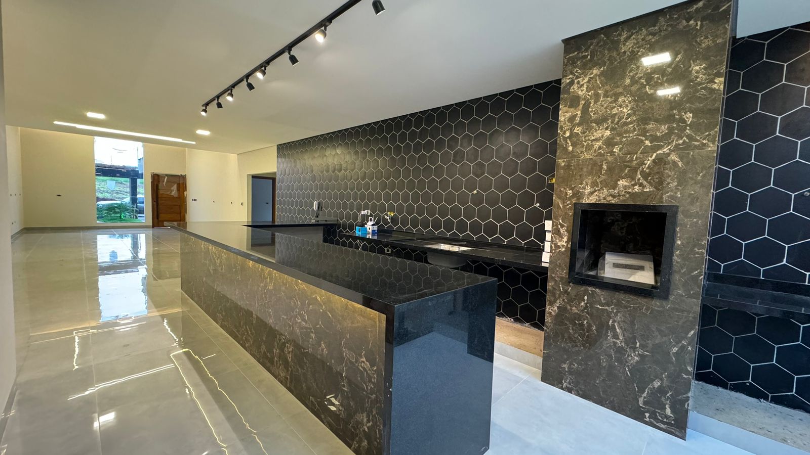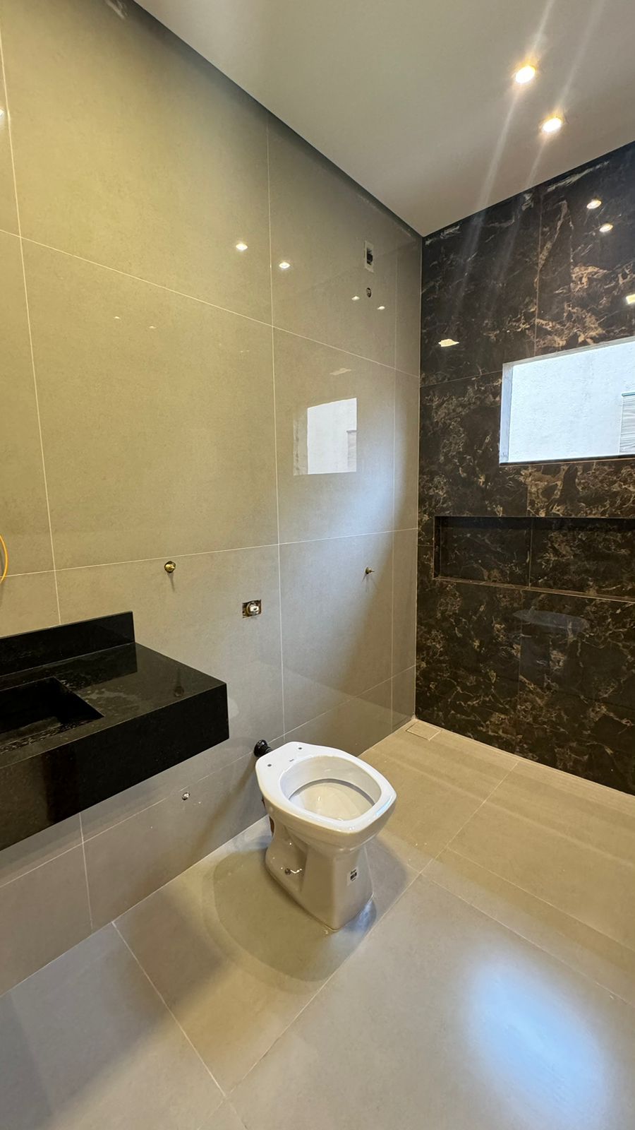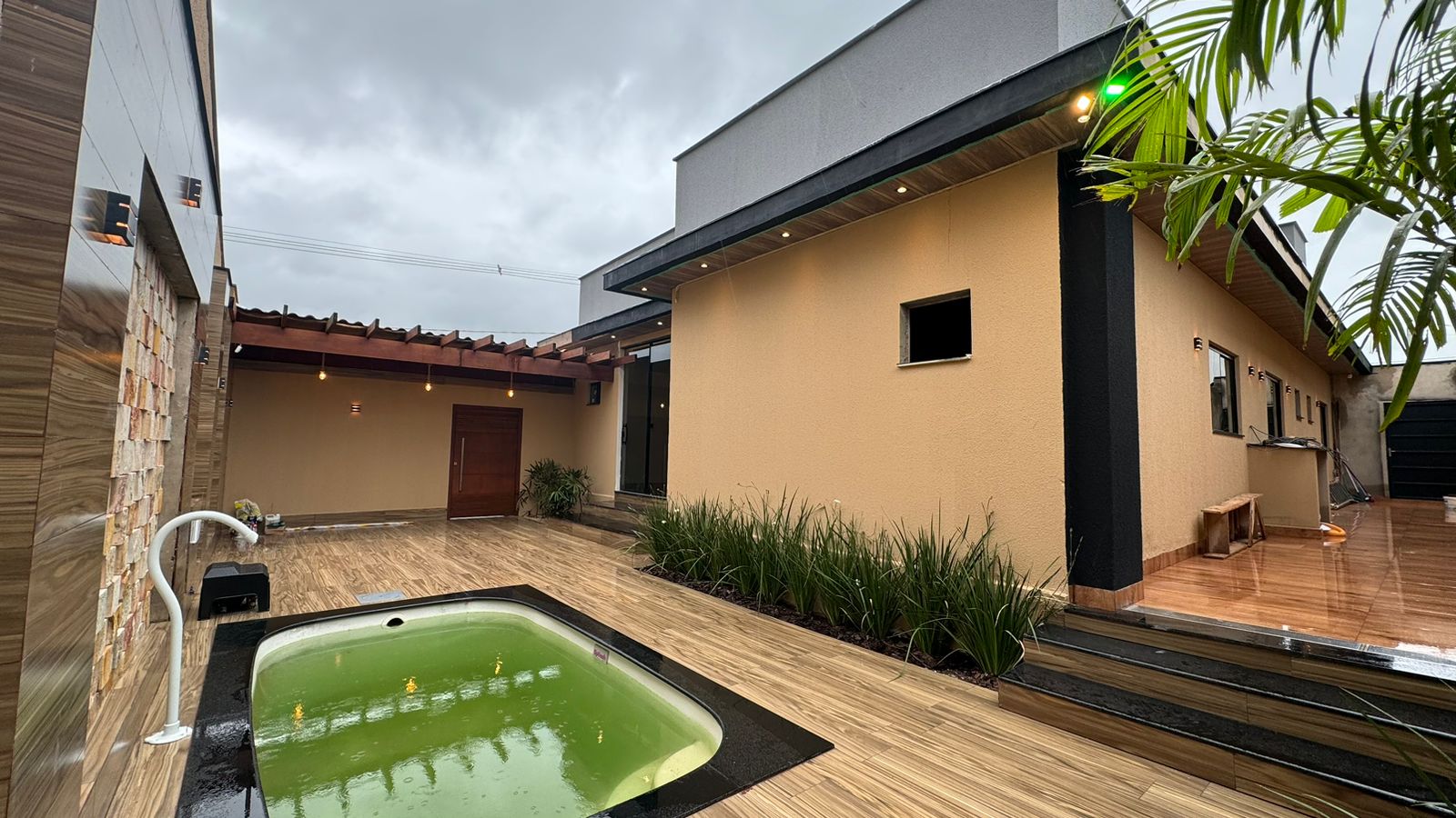 Casa Residencial localizada no Setor Beira Rio I, contendo 3 suítes um com closet , sala integrada de 90 metros quadrado Pé direito duplo, bancada de 5 metros em pedra, cozinha, piscina, espaço gourmet, área de serviço, garagem para 2 carros cobertos, piso de porcelanato 84/84 Delta e gesso cartonado.