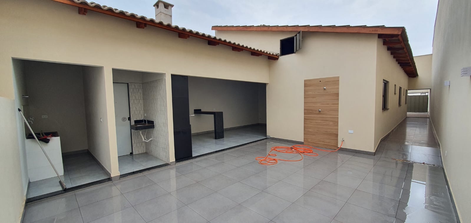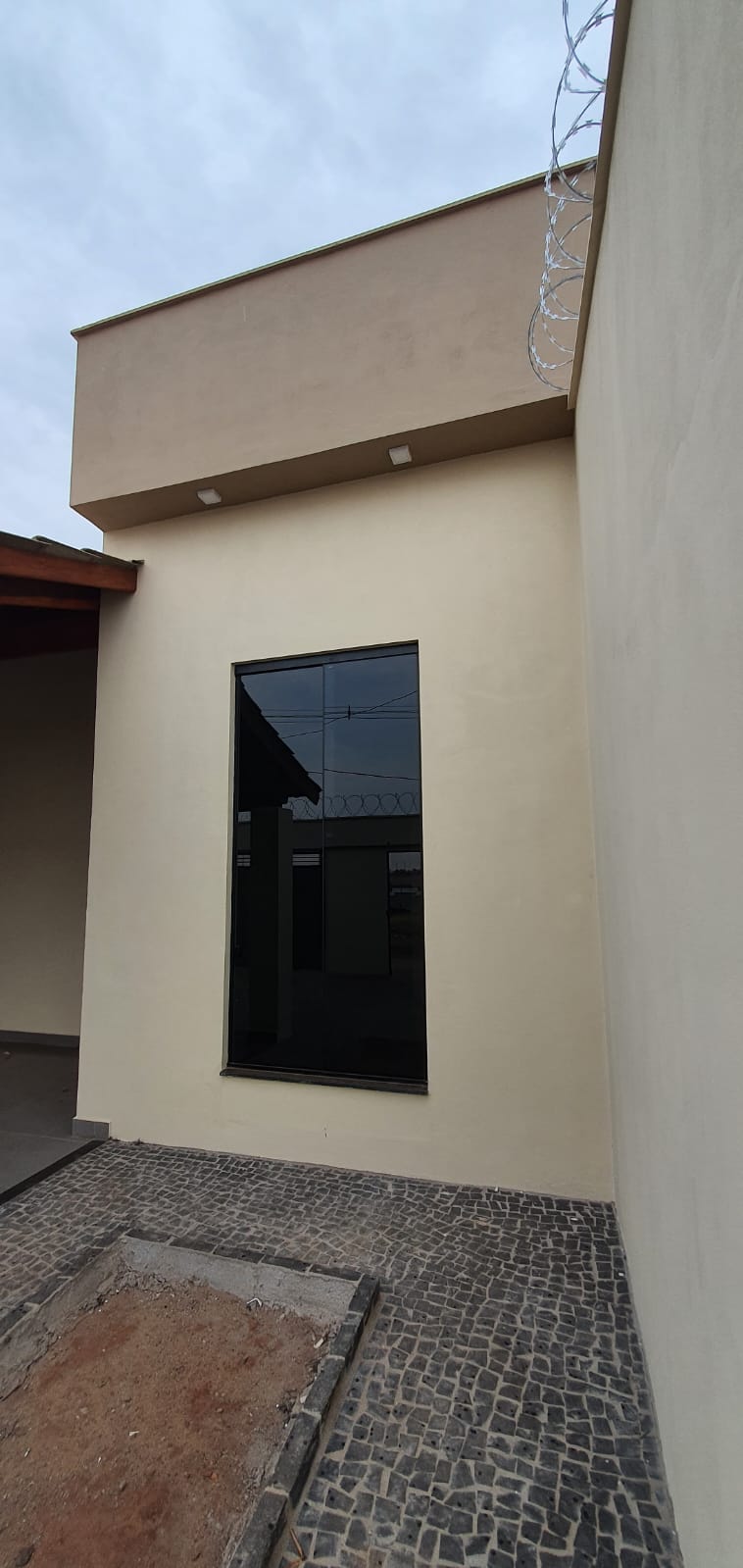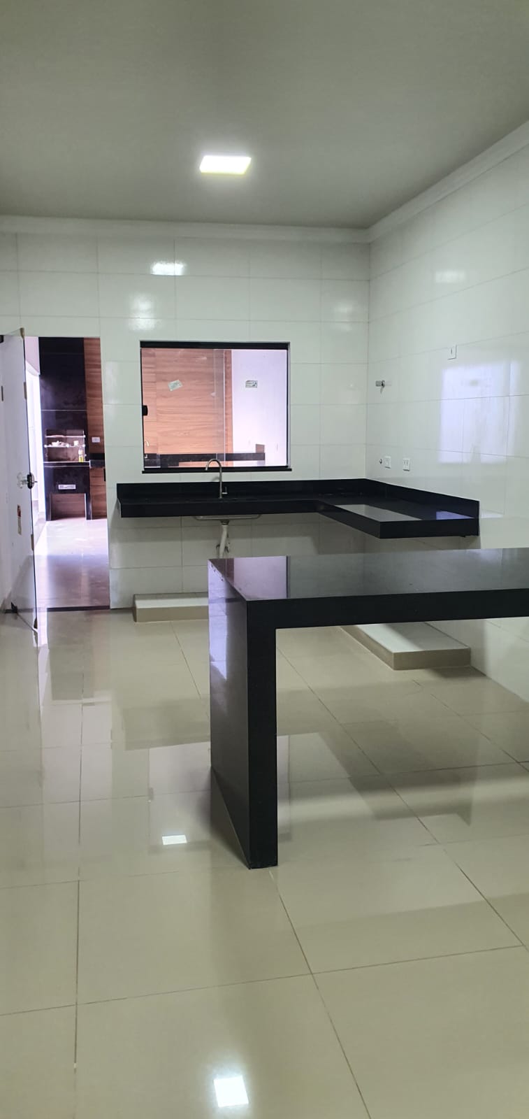 03 quartos sendo 01 suíte, sala ampla com pé direito alto, copa, e cozinha integrada, banheiro social, área de serviços, banheiro externo, área gourmet com bancada e churrasqueira, garagem ampla.